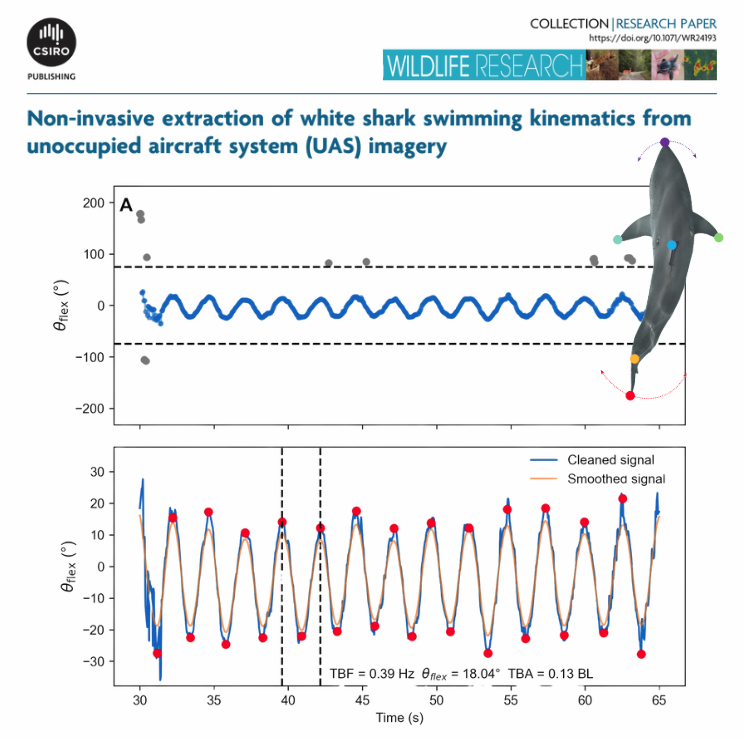 Non-invasive extraction of white shark swimming kinematics from unoccupied aircraft system (UAS) imagery (DiGiacomo et al. 2025)